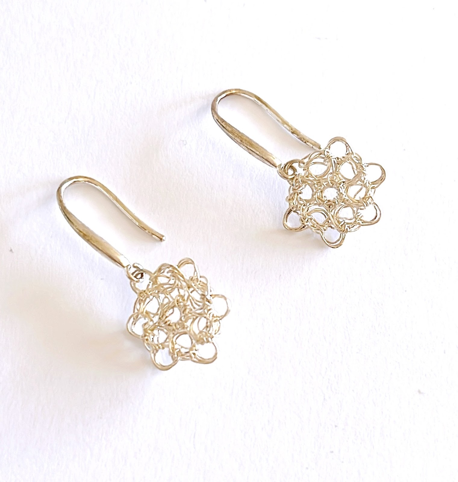 Una pieza que une belleza, precisión y el alma del trabajo hecho a mano. Pendientes tejidos a mano con alambre de plata, cuyas características son únicas y diferentes. Su forma recuerda una pequeña flor estelar, liviana y brillante, perfecta para quienes aman la sutileza con carácter.